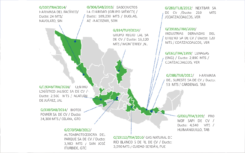 A la fecha ERGON-CH4 ha sido aprobado por la Comisión Reguladora de Energía como operador y representante legal en los siguientes sistemas.